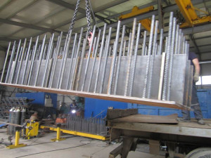 Производство аванбеков осуществляется путем сваривания металлического проката (уголок, квадрат). Конструкция элемента предусматривает пару сплошных стальных балок, соединенных перекладинами. Балки двутавровые с различной высотой, связующие из уголка. В верхней части имеется подъем на величину прогиба под весом консольной части. При наличии значительного прогиба предусмотрено наличие устройства выборки. Для крепления используется временная стыковка блоков.В процессе разработки проекта проводится просчет предельных напряжений в критических точках, прочность сечений, показатели жесткости и иные параметры. Наличие точных расчетов обязательное условие прочности и надежности элемента, исключения его опрокидывания в процессе надвижки пролета. Требуется также наличие минимально возможных усилий при надвижке мостового пролета.