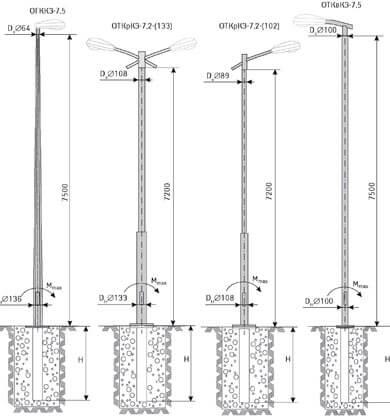 Опоры трубчатые квартальные изготавливают из трубного проката. Поэтому диаметр такое опоры одинаков по всей высоте. Крепится светильник к предварительно смонтированному фундаменту болтами, гайками и гроверами. Антикоррозийное покрытие осуществляется методом горячего цинкования, что увеличивает срок эксплуатации изделия. Гарантия на обработку составляет не менее 15 лет, хотя такое покрытие позволяет оставаться опорам в неизменном виде от 25 до 35 лет. Для безопасной установки ОТК выбрана определенная высота столба, и она не должна превышать 7,5 м. Добавляет популярности опорам привлекательная и выгодная цена.Что предлагает наша компания