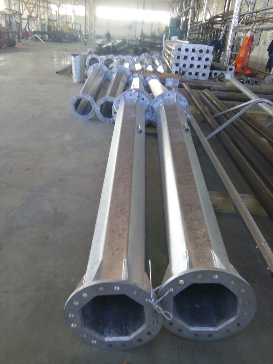 В ассортименте представлены фланцевые конструкции, которые крепятся к закладным деталям основания. Также есть прямостоечные столбы, основание которых устанавливают в заранее подготовленный котлован и заливают бетоном.